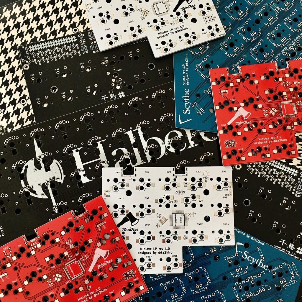 などなど、店主のこだわり(変なこだわりもあるかも?しかし痒い所に手が届く感)がギッシリ詰まったキーボードが、MiniAxe、MiniAxe LP、Halberd、Scythe、Kamisori、Chidori です。